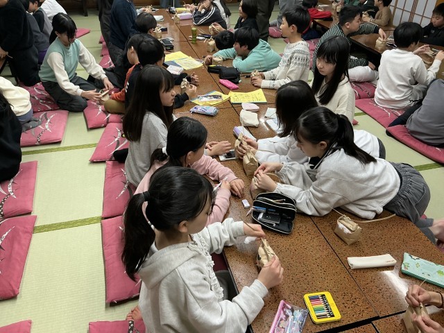 食後の体験活動では、お米の袋作り体験をしました。