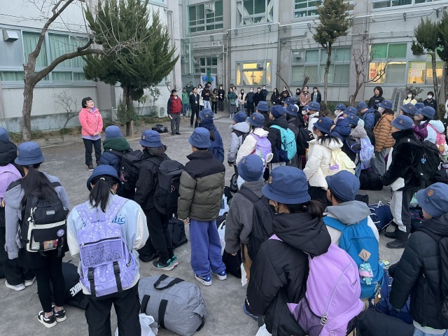 到着時には、多くの保護者の方々や先生に出迎えていただきました。