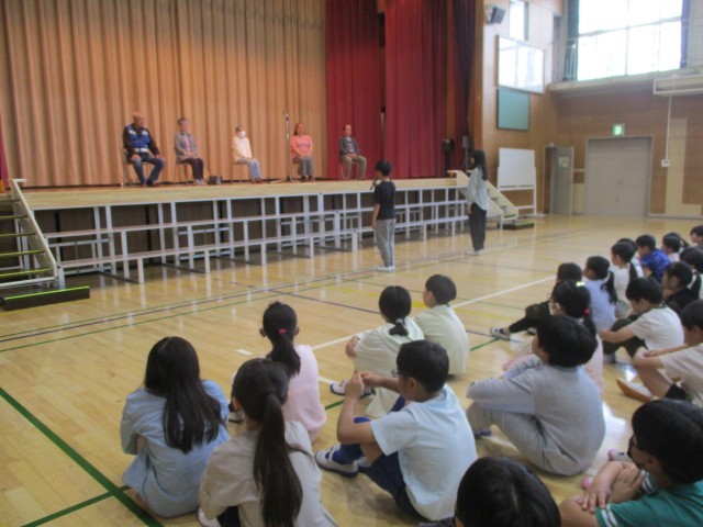 登校中の旗振りや読み語りをしてくださっている方々に感謝の気持ちを伝えました。6年生が代表して立派に伝えることができました。