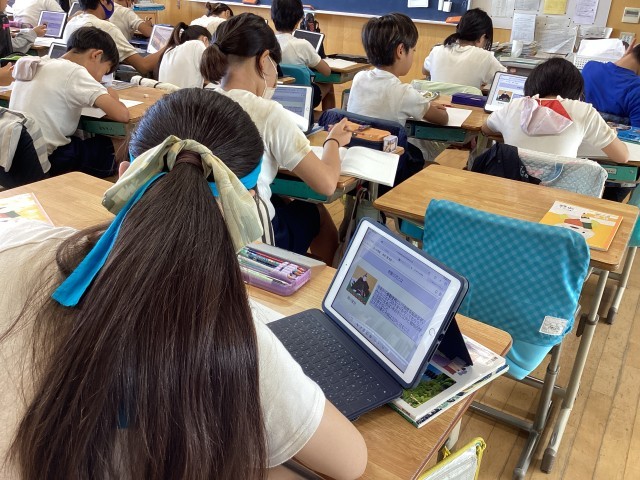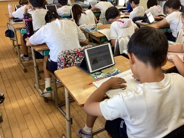 タブレットにある資料から情報を読み取って、気付いたことを話し合いました。