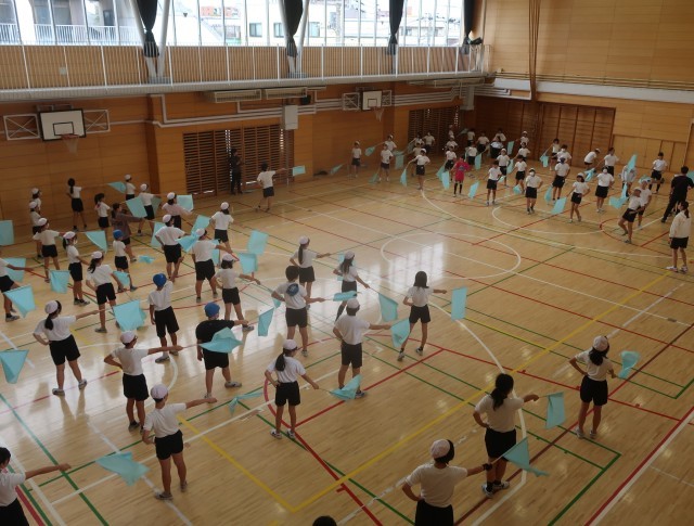 互いの動きを見ながら、もっとこうした方がいいと、みんなで取り組んでいます。6年生として、自分たちでつくりあげる気持ちを前面にもって取り組む姿が素晴らしいですね。
