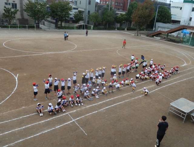 まつえ保育園のお友達が見に来てくれました。いつも以上に張り切って踊る1年生です。かわいいかいじゅうがいっぱいです!