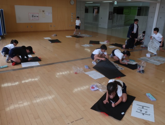 4年生は、法被に文字を書き込み始めました。渾身の文字を書こうと、悩みながら準備しています。