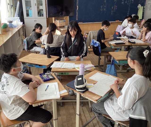 国語の学習では、議題について友達同士で話し合う活動をしています。