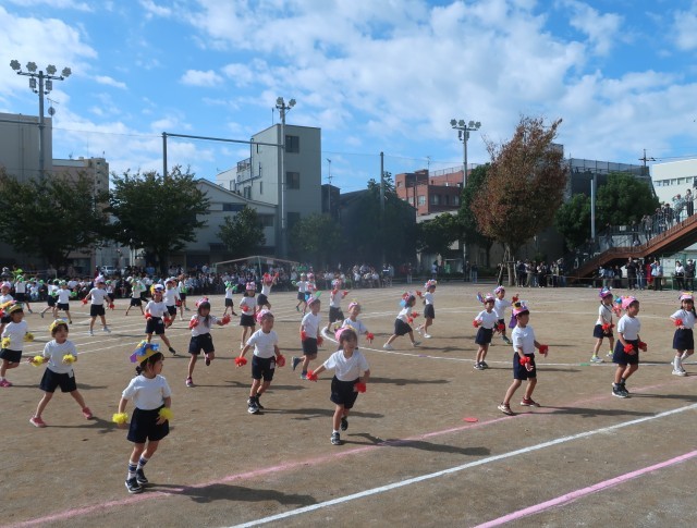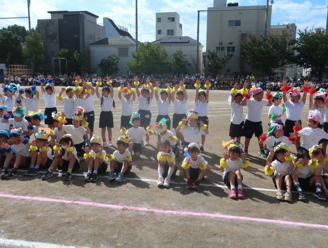 かわいい怪獣たちが、所狭しと体いっぱいに使って表現していました。4色の怪獣帽子もかわいさをより引き立ててくれました。かわいさばかりに目が行きますが、入学してからの大きな成長にたくましさも見せてくれました。でもやっぱり、「かわいいだけじゃ、だめですか?」には、「いいですよ!」ですね!
