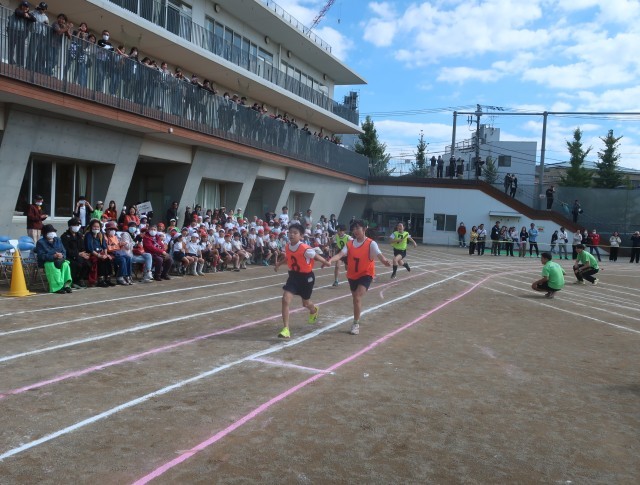 ラストは、6年生による代表リレーです。バトンパスに力を入れて練習してきました。6年生のバトンパスを見て、リレーにあごかれをもった人がたくさんいるでしょう。最高のバトンパスを見せてくれました。