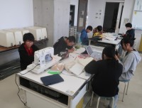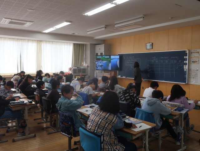 川の流れをよく見ると、土地の地形に関係しています。山の方へ行くと流れが速く、河口に近づくと流れは遅くなります。では、河原にある石の形はどうでしょうか。川の様子を思い起こして、流れる水の働きについて、予想をしています。