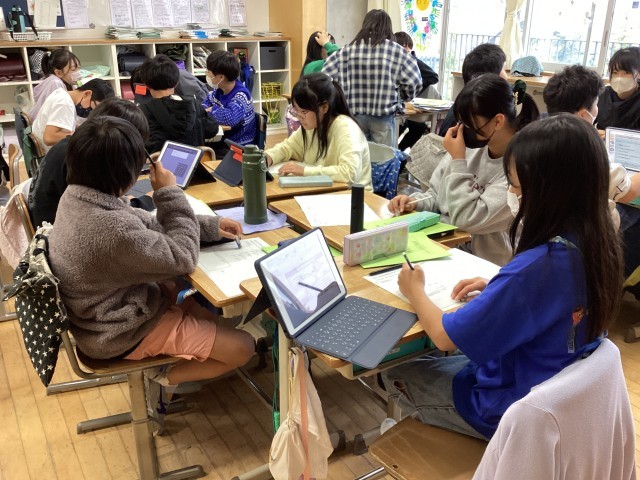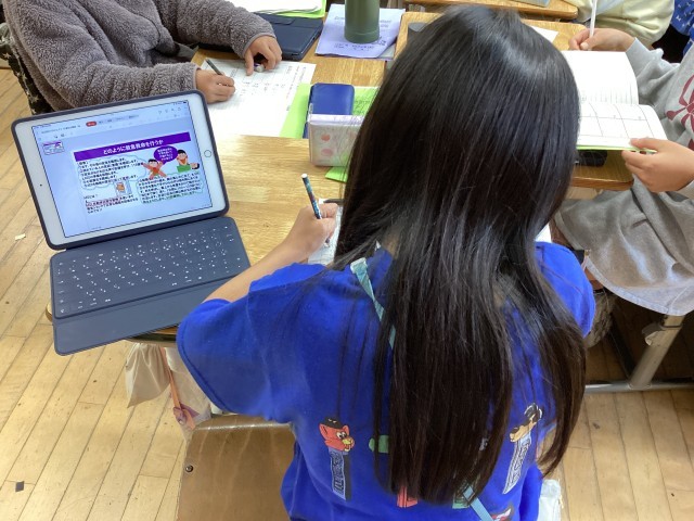 総合の学習では、防災について調べた内容について班で情報を共有しました。