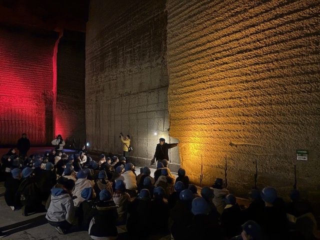 大谷資料館に着きました。地下へ入り大谷石の発掘場所を見学します。地下は気温10℃です。
