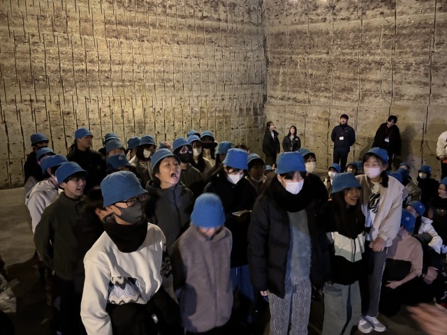 地下へ入り大谷石のステージに立ちました。音の響きを楽しみながら、みんなで歌を歌いました。クイーンと童謡のコラボレーションライブは最高です。