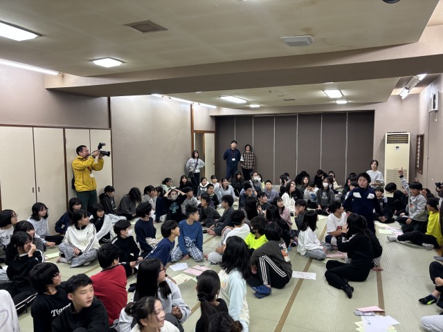 1日目のレクです。チャットGPTゲームと、今風なAIを使ったクイズから始まりました。チームで協力して考えています。