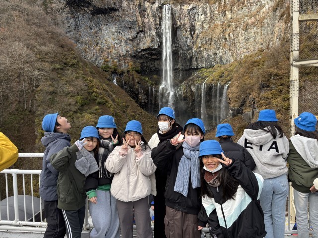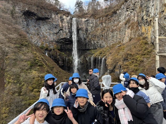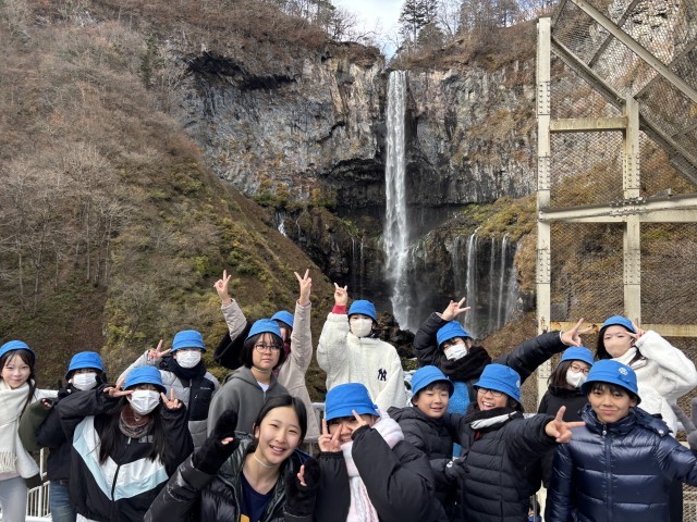 華厳の滝に着きました。雪が舞い始め奥日光を感じます。水量の迫力もあり、素晴らしい自然を味わうことができました。