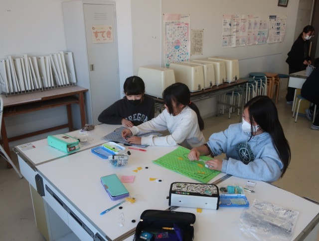 ウォールポケットづくりでは、ミシンを使ったり、手で縫ったり、刺繍をほどこしたりして作っています。自分で作った作品なので、完成させて家で使いたいですね。