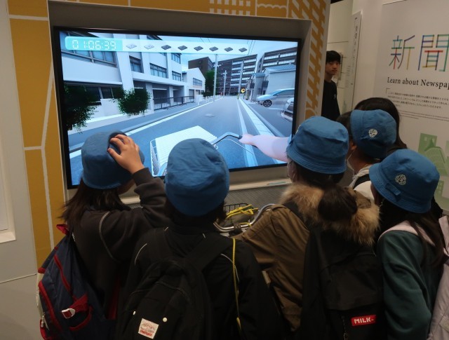 はじめは、横浜にあるニュースパークです。新聞記事のできるまでを新聞記者の方からレクチャーしていただきました。全国には、たくさんの新聞があることがわかりました。つぎに、展示見学をして新聞への興味をたくさんもつことができました。