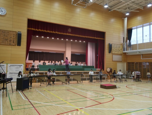 2年生は初めての舞台発表になります。いろいろな楽器で合奏を練習しています。大きな舞台で発表するのは、入学式の歓迎の出し物でもやりました。2年生のパワーを楽しみにしています。
