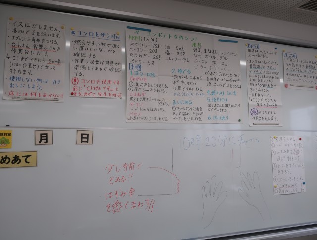 調理実習でベーコンポテトを作りました、ゆで加減、塩加減が味の違いに出ているのではないでしょうか。香ばしい油のあおりが食欲を促します。みんな、おいしくいただきました。