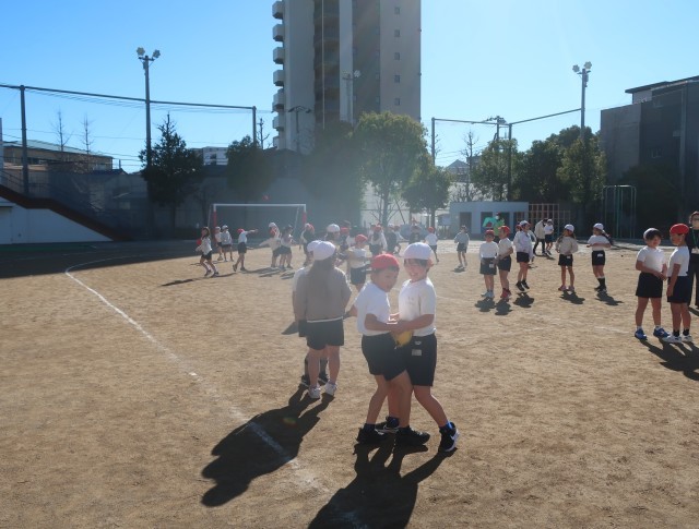 2年生と一緒にボール遊びをしました。ボールを使って、いろいろな運動ができます。体いっぱいに使って、ボールを運ぶ運動もしました。みんなが笑顔でボール遊びに取り組んでいました。