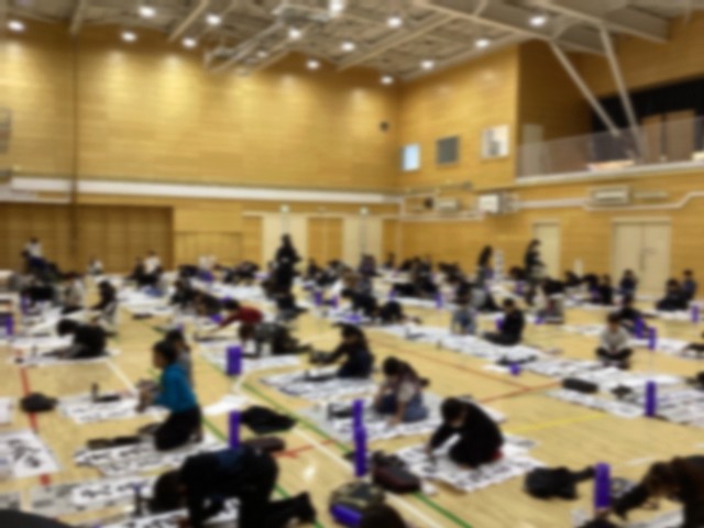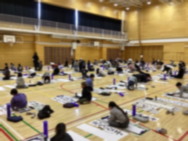 1月13日の1・2時間目に体育館で席書会が行われました。