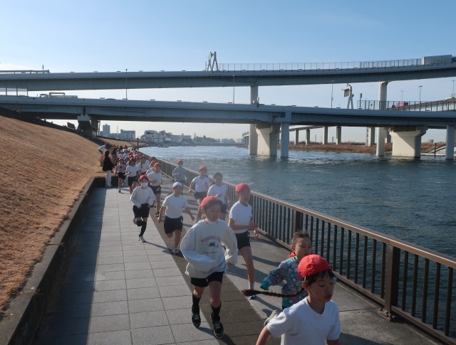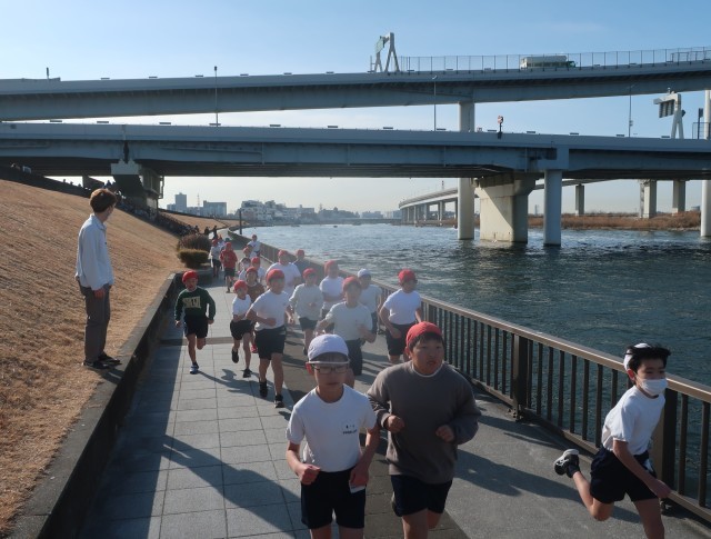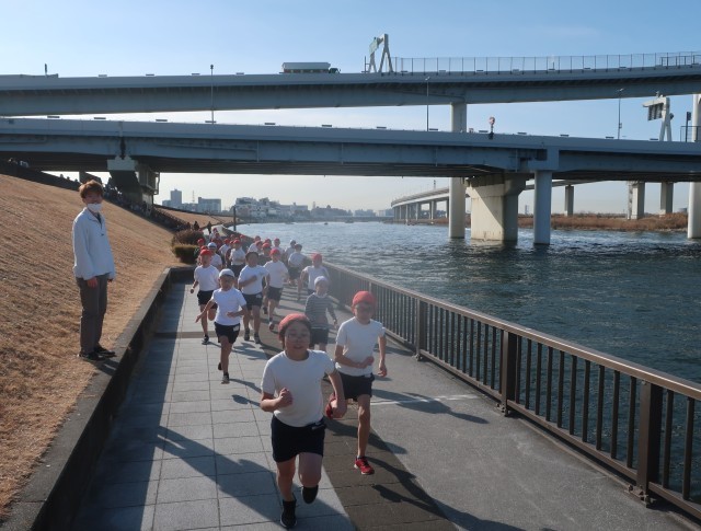 マラソンアタック、土手マラソンの開幕です。トップは4年生が出場です。4年生になると、走りがたくましくなってきました。順位を目指す人、自分のペースで走る人、最後まで走り切ることを目標に、力強い走りを見せてくれました!