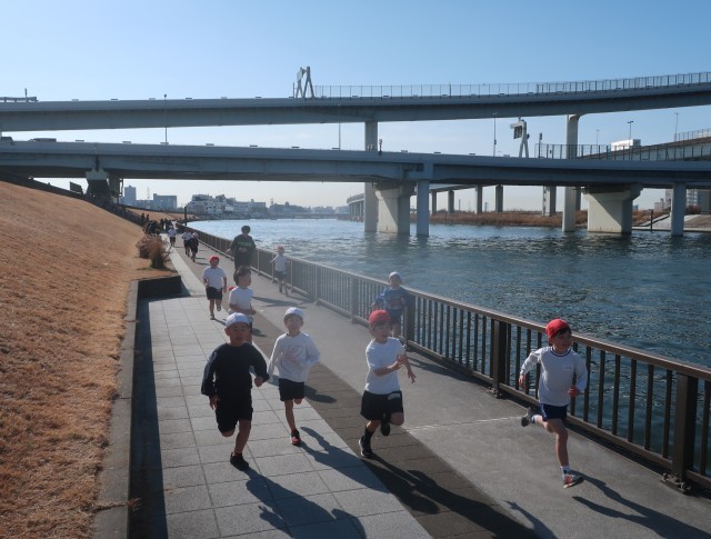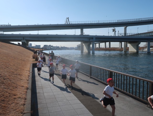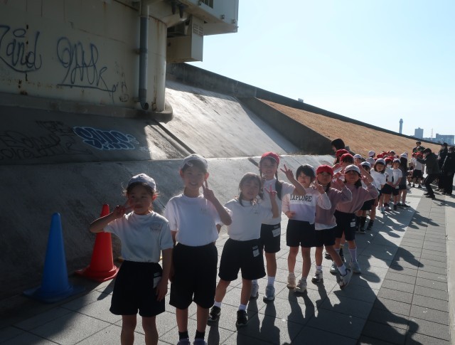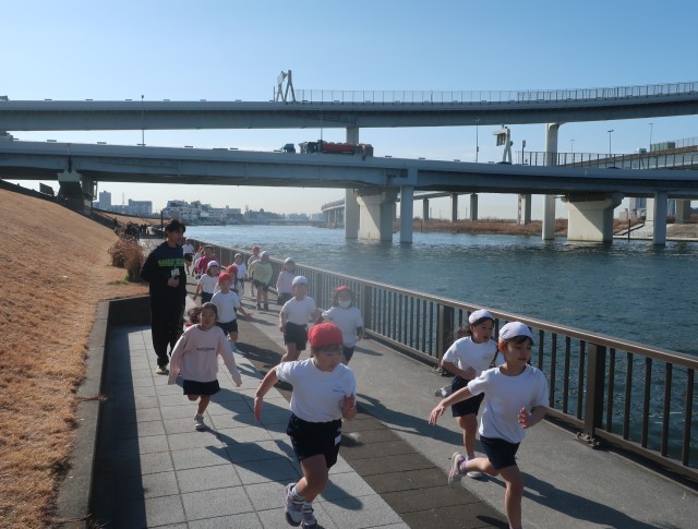 初めての土手マラソンに出場する1年生。初めてのコースにどきどきわくわくです。学校でたくさん練習してきました。自分の走りを挑戦する1年生の、どの子の顔もピカピカに輝いていました!