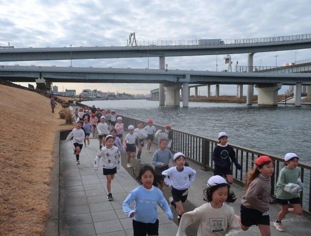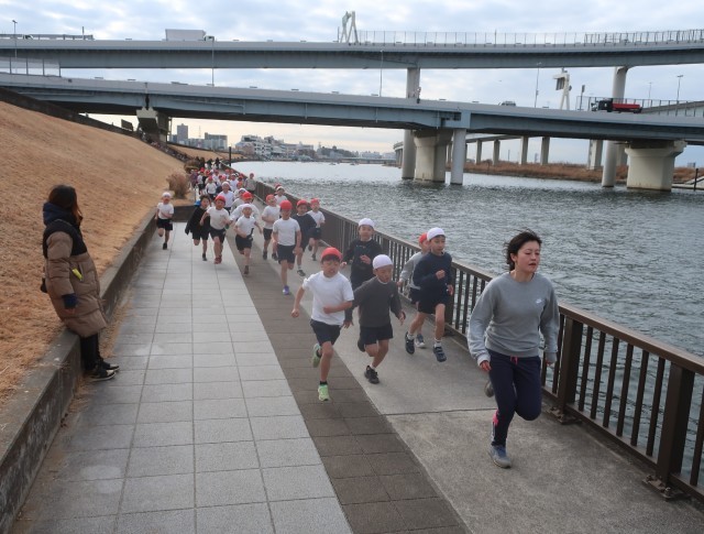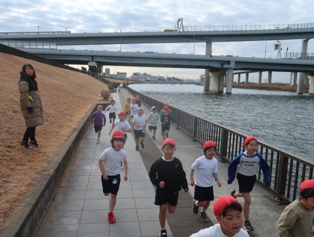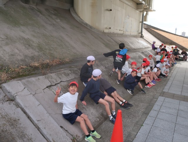 続いて2年生です。1年生の時は、初めてだったけれど、コースもわかって走りが変わっています。今日は、陽が当たらず風もあって寒かったのですが、みんな真剣な表情で走り抜きました。