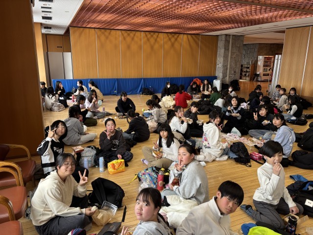 おなかが空いていたので、お弁当を美味しくいただきます。朝早く、お家の人が作ってくれました。感謝の気持ちでいただきましょう。