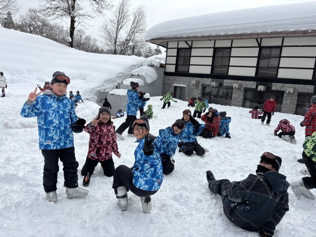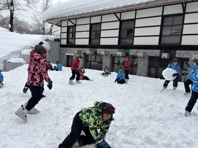 思い思いの雪遊びに興じる子供たちです。雪国の楽しさを大いに味わっていますね。