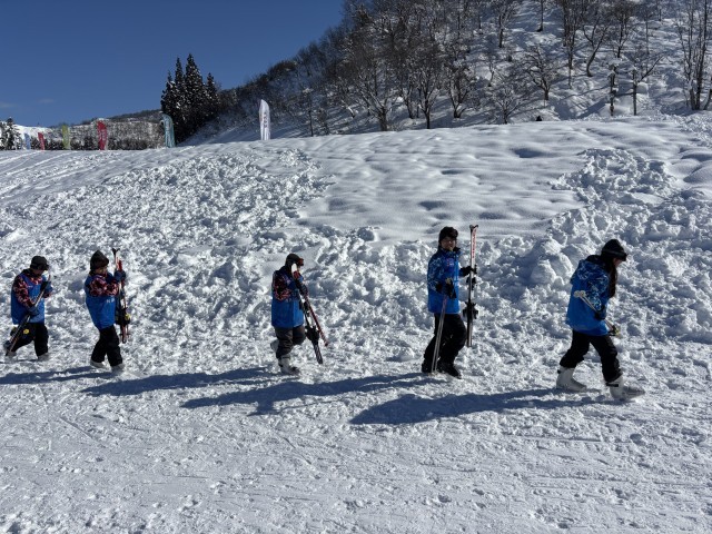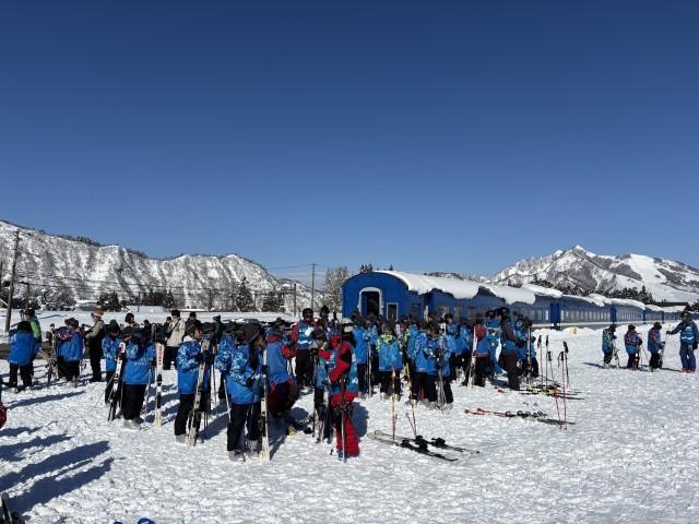 中里スキー場に着きました。スキー教室開校です。絶好の天気に最高のスキー日和になること期待しましょう。
