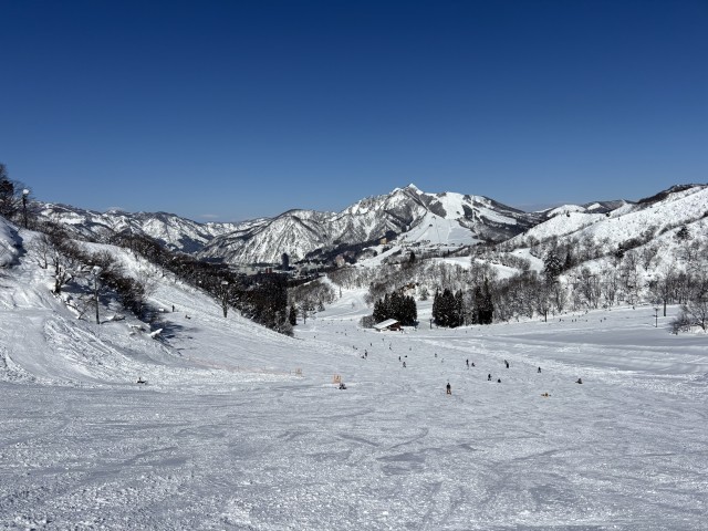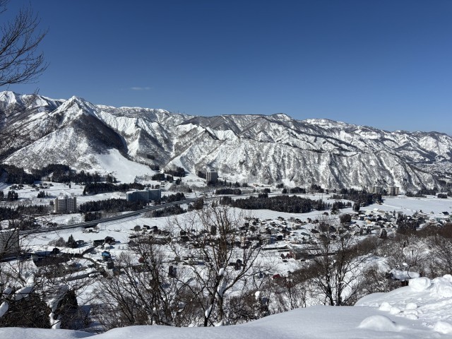 経験者はエスカレーターを使って長く滑る練習をしています。リフトに乗るチームも出てきました。山の上の景色は素晴らしいです。