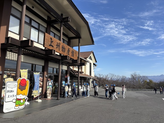 上州物産館に着きました。ガラス絵付け体験を行います。群馬県に入りました。群馬と言えばぐんまちゃんですね