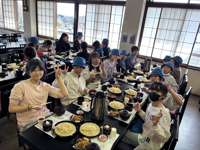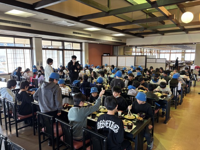 上州名物水沢うどんの昼食です。炊き込みご飯に唐揚げと豪華な昼食です。