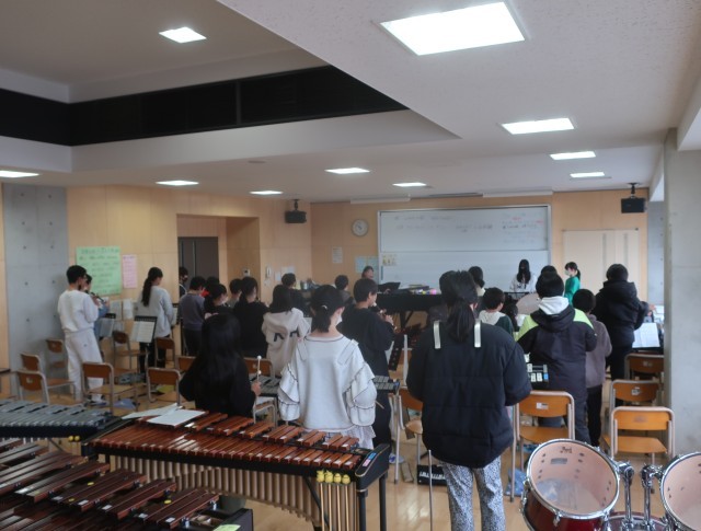 6年生が小学校最後の合奏練習をしています。これからの卒業関連の行事で演奏します。小学校の思い出を振り返り、たくさんの思いを込めて演奏します。