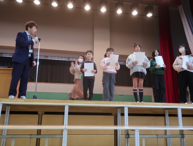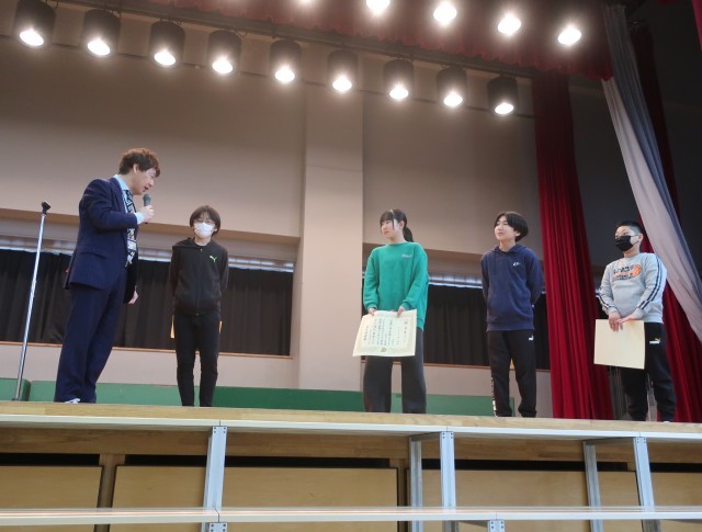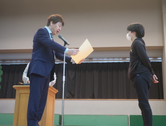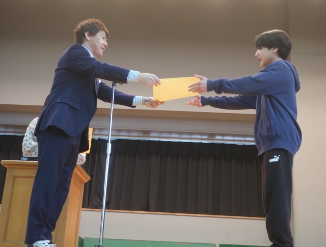 表彰を行いました。都展に出品した児童への表彰と6年生の健康努力児童です。健康努力は、6年間、心と体の健康について取り組んできた児童です。心と体の健康のために、体を動かすこと、自分自身努力すること、そして何よりも人を思うことができる、素晴らしい児童たちです。