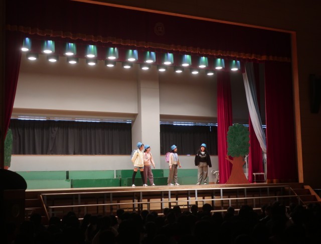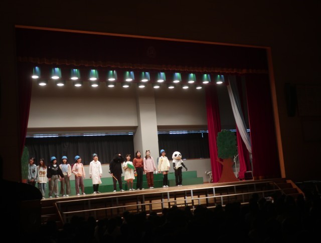 今年は演劇クラブが発足し、クラブ活動で練習してきました。演劇クラブの発表が行われ、子供たちは一生懸命に演じていました。みんなの前で演じることは、緊張しますが、精一杯演じたことに拍手です。