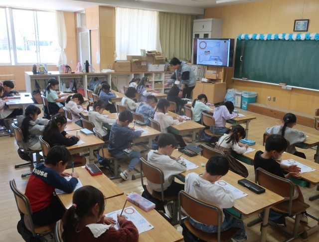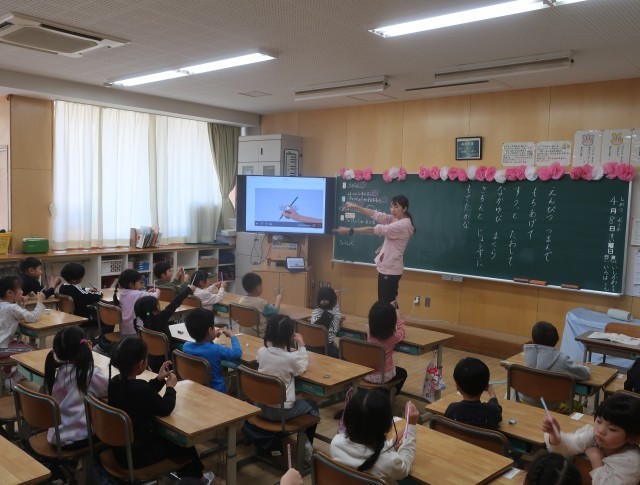 えんぴつの正しい持ち方を学び、線をなぞって書き方を学びました。正しい持ち方は、美しい文字につながります。