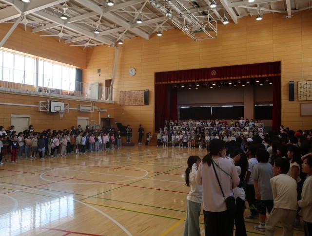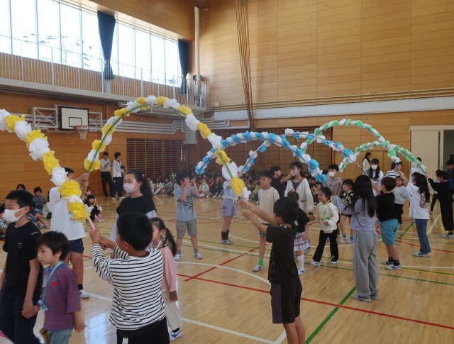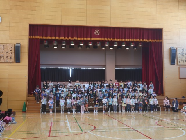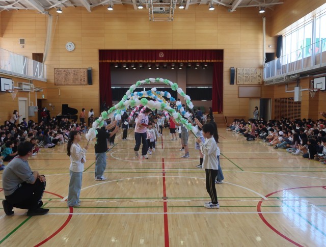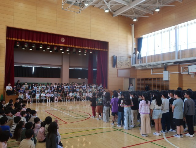 それぞれの学年が、1年生へのプレゼントとおもてなしをしてくれました。1年生からは、誰だって誕生日の歌を披露してくれて、全校のみんなの手拍子と誕生日の声掛けに盛り上がりました。校歌斉唱は、全校が力いっぱい歌声を響かせてくれました。温かな雰囲気で1年生を迎えたすてきな会になりました。代表委員の皆さん、司会進行ご苦労様でした。