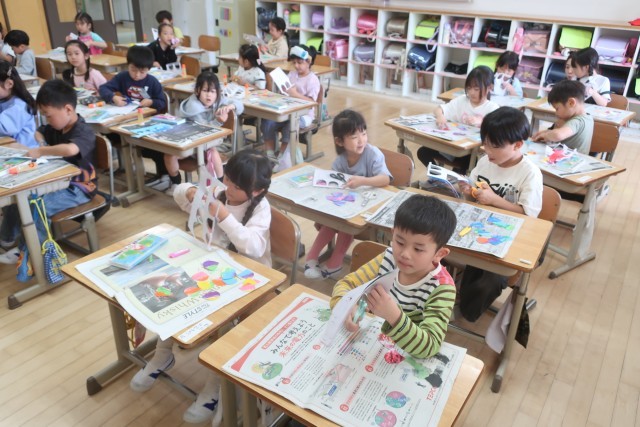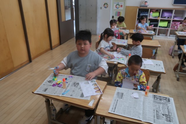 もうすぐ5月を迎えます。1年生がこいのぼりを作っています。うろこを切る時、線に沿ってはさみを使って丁寧に仕上げていました。いろいろな色のこいのぼりがもうすぐ完成します。