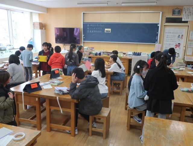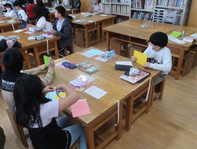 図工の時間に活用する図工ノートを作っています。図工ノートには、図工の時間の約束やめあてが書かれています。自分で使うノートを大切につくっているところがよいですね。