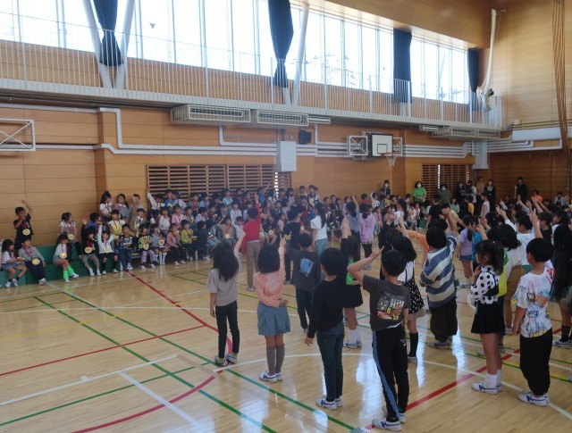 各学年から1年生へ歓迎の出し物を行いました。4年生は、1年生へ手作りのメダルをプレゼントしました。2年生は、学校の勉強を紹介として「大きなかぶ」を演じました。3年生は、先生クイズを出しました。5年生は、学校生活○×クイズを出して、盛り上げてくれました。どの学年も1年生を温かく迎えてくれてうれしいですね。