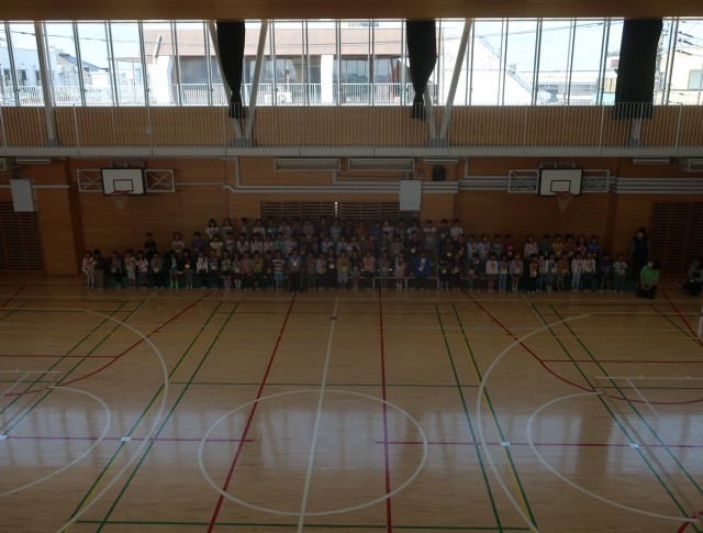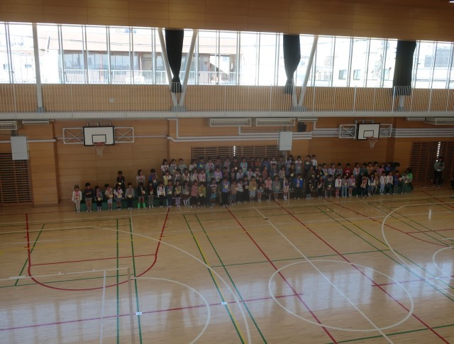 さあ、1年生の出番です。1年生みんなで元気に「ドキドキドン1年生」を歌いました。元気いっぱいの歌声に、大きな拍手です。