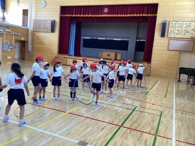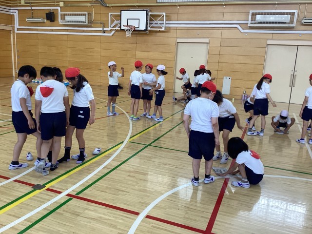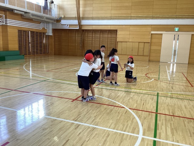 体育館の体育では、友達と協力して活動に取り組むことをめあてに、体を使った様々な活動に取り組みました。