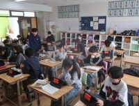 「ふわふわ言葉」と「ちくちく言葉」の話をしました。心が温かくなる言葉をふわふわ言葉と言います。ふわふわ言葉を言ったり、言われたりすると、みんなの心が温かくなります。ちくちく言葉は、心をちくちくと傷つける言葉です。ちくちく言葉を松江小学校から追い出しましょう。ふわふわ言葉いっぱいにあふれる松江小学校にしましょう。