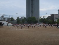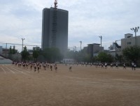 校庭では、ソフトボール投げを実施しました。1年生は、初めて大きなソフトボールを投げました。学年が上がるにつれて、投げる距離も遠くになっていきます。天候がよく、絶好のソフトボール投げ日和の1日で、楽しく過ごすことができました。