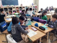 1人対1〜2人の少人数グループということで、温かい雰囲気の中、ゆったりとお話を楽しみました。お話の面白さはもちろん、5年生の優しさにも大満足の2年生でした。