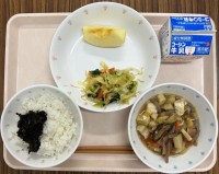 ご飯 牛乳 千草焼き おろし和え 五目汁 冷凍みかん