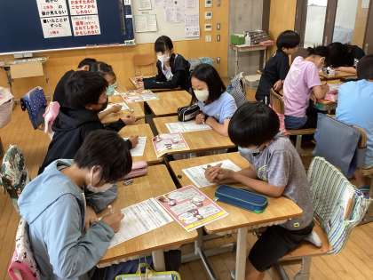 ALSOKの方に来ていただき、インターネットの使い方についての授業をしていただきました。スマホやタブレットを使用する際に、どのようなことに気を付けなければいけないかということを学びました。