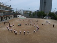 5時間目は校庭へ出て練習しました。かわいい怪獣の子守歌です(笑)