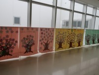 粘土をこねて、カラフルなビーズをつけて思い出ペンダントを作っています。思い出ペン...
