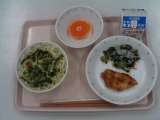 みそラーメン 牛乳 鶏のから揚げねぎソース わかめの中華和え みかん