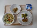 中華丼 牛乳 春雨サラダ 小松菜の中華スープ